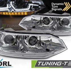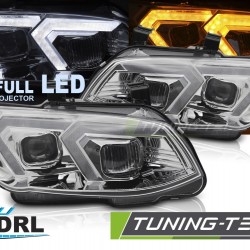 PL EN Opis Description Lampy diodowe ze ?wiat?em do jazdy dziennej, w technologii Led.Z dynamicznym kierunkowskazem.Z funkcj? welcome lights.100% nowe, w komplecie (lewa i prawa).Homologacja: brak Full Led headlights with Daytime Running Lights (DRL).Cu semnalizare dinamica.With welcome light funct..