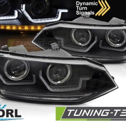 PL EN Opis Description Lampy diodowe ze ?wiat?em do jazdy dziennej, w technologii Led.Z dynamicznym kierunkowskazem.Z funkcj? welcome lights. 100% nowe, w komplecie (lewa i prawa).Homologacja: brak Full Led headlights with Daytime Running Lights (DRL).Cu semnalizare dinamica. With welcome light fun..