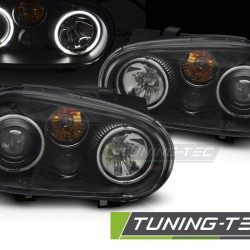 PL EN Opis Description Lampy soczewkowe z ringami CCFL Angel Eyes. 100% nowe, w komplecie (lewa i prawa).Homologacja: norma E9 - dopuszczone do ruchu. Projector headlights with CCFL dual halo rims.100%noi, in pereche (St+Dr)Approval: E-marked E9 - for street legal. compatibil cu: compatibil cu: VO..